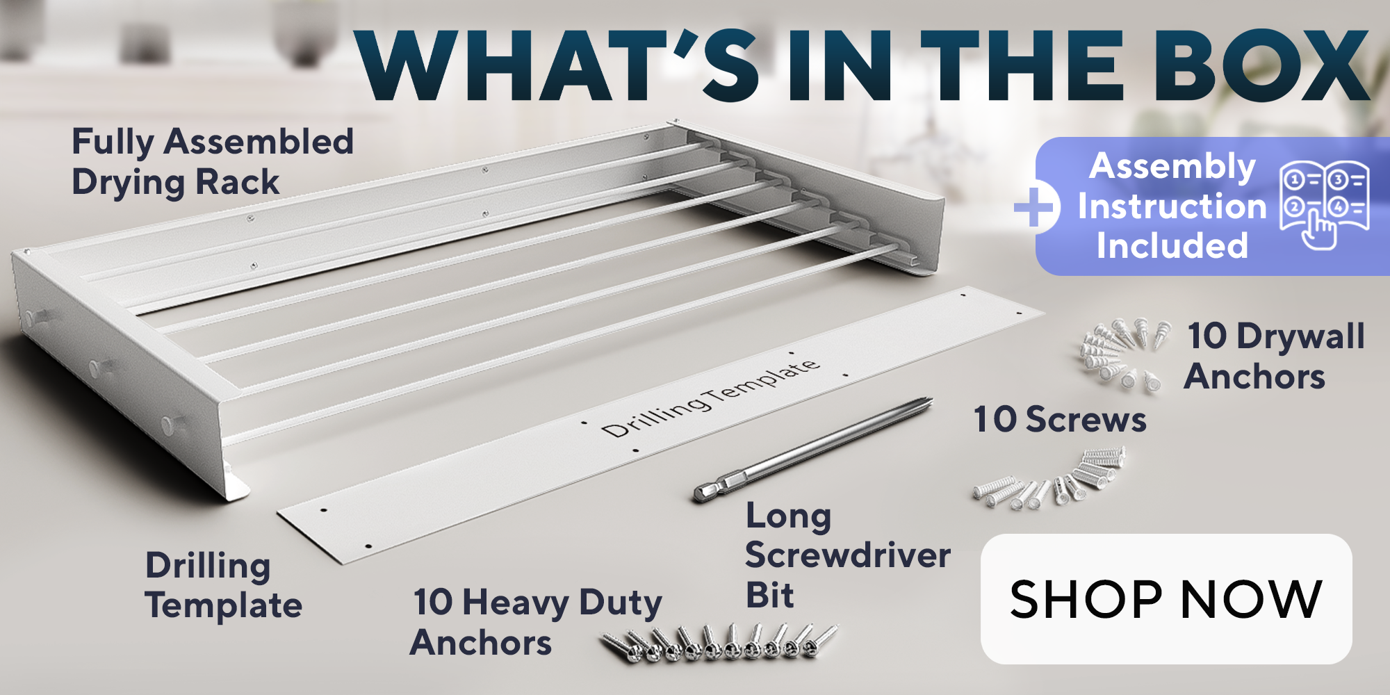 Sturdy Wall Mounted Drying Rack 28” – Foldable Space-Saving Design – Heavy-Duty Wall Hanging Clothes Drying Rack, 55-lb Capacity – Easy Installation with Wall Template – Ideal for Clothes, Towels & More