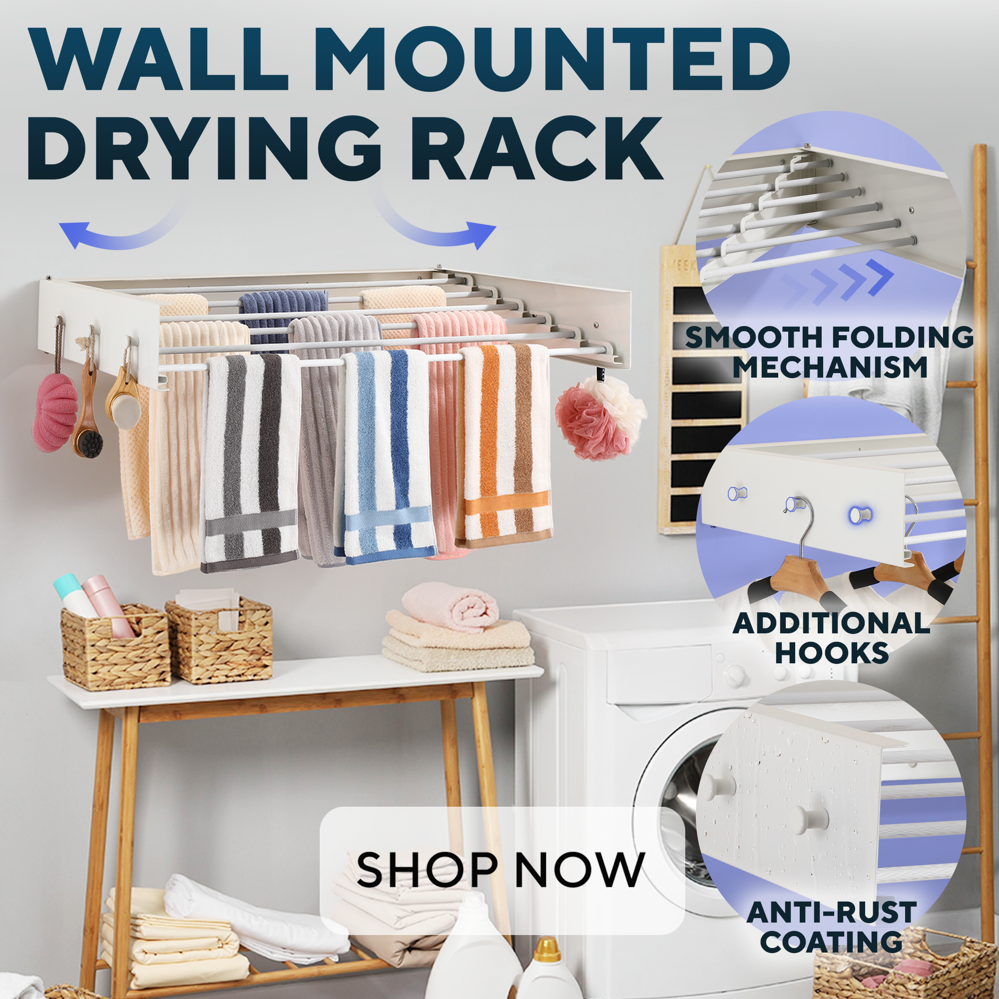Sturdy Wall Mounted Drying Rack 40” – Foldable Space-Saving Design – Heavy-Duty Wall Hanging Clothes Drying Rack, 66-lb Capacity – Easy Installation with Wall Template – Ideal for Clothes, Towels & More